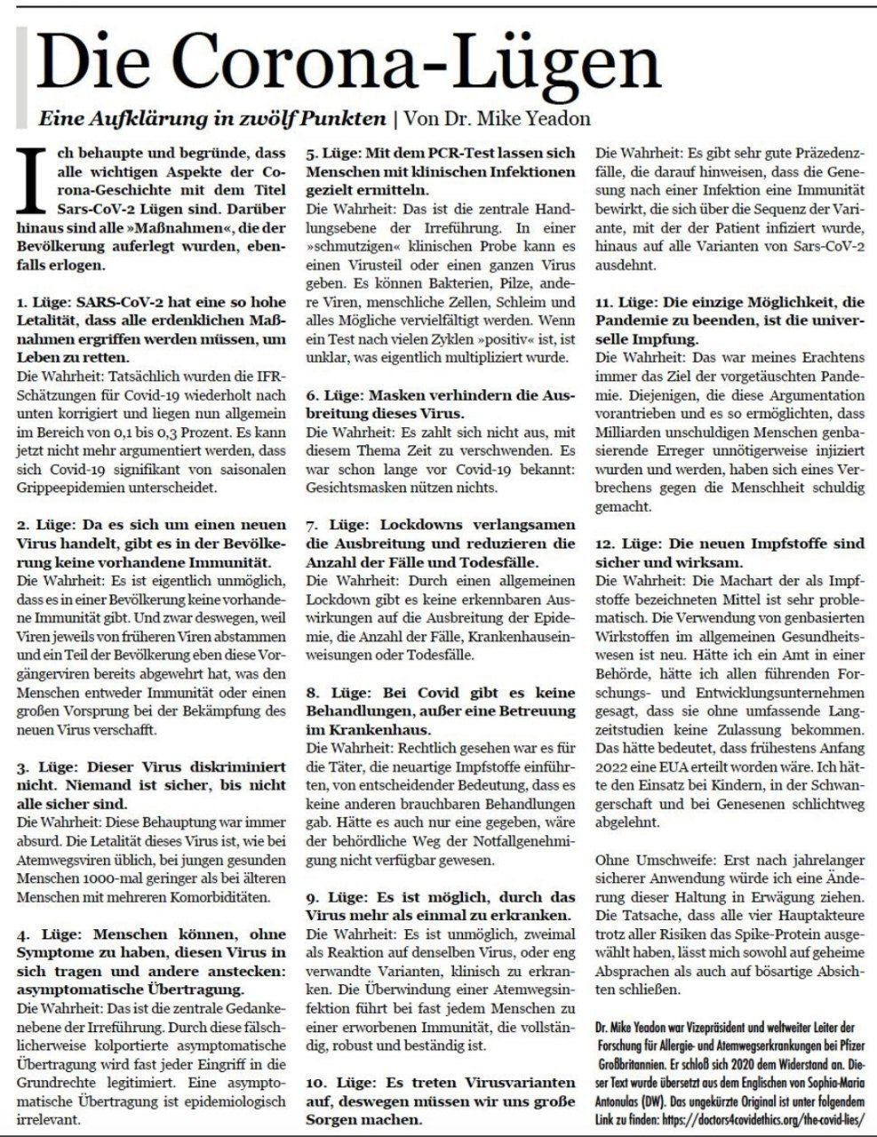 Als ehemaliger Vizepräsident kann man davon ausgehen, daß Dr. Michael Yeadon weiß wovon er spricht. Seine Warnung sollte Gehör finden.